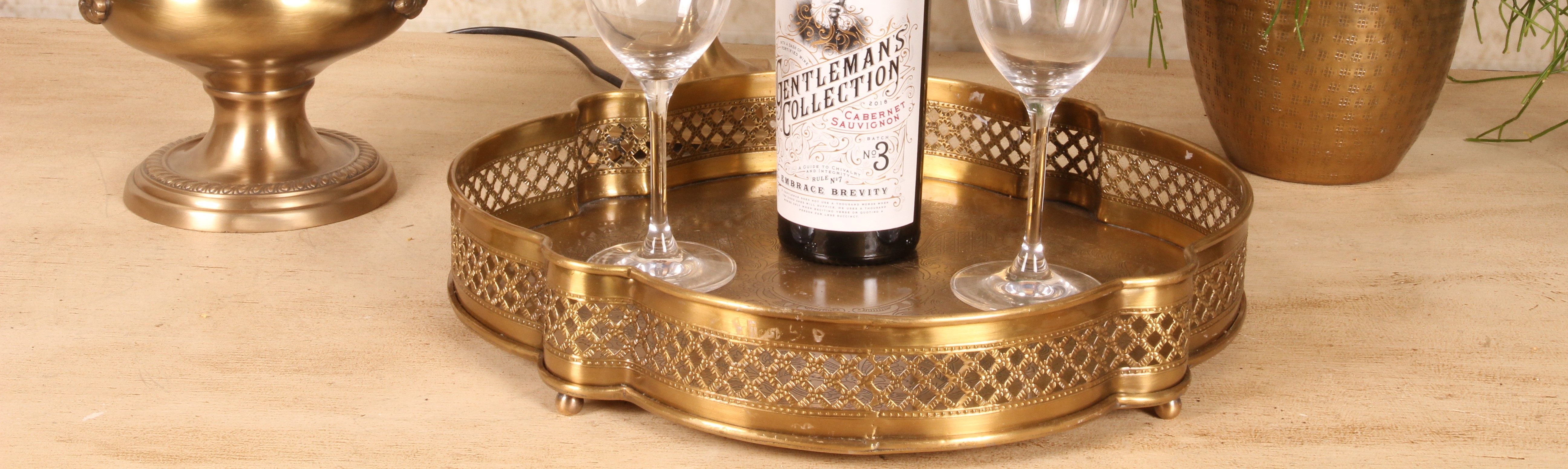 gemaakte dienbladen van massief messing of ijzer, verkrijgbaar in verschillende